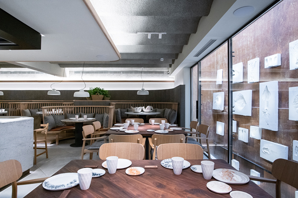 Ingredients, flavours and aromas are perfectly paired with a design of clean and harmonious geometries, fine materials and handicraft processes, which emphasise the richness of Catalan cuisine.