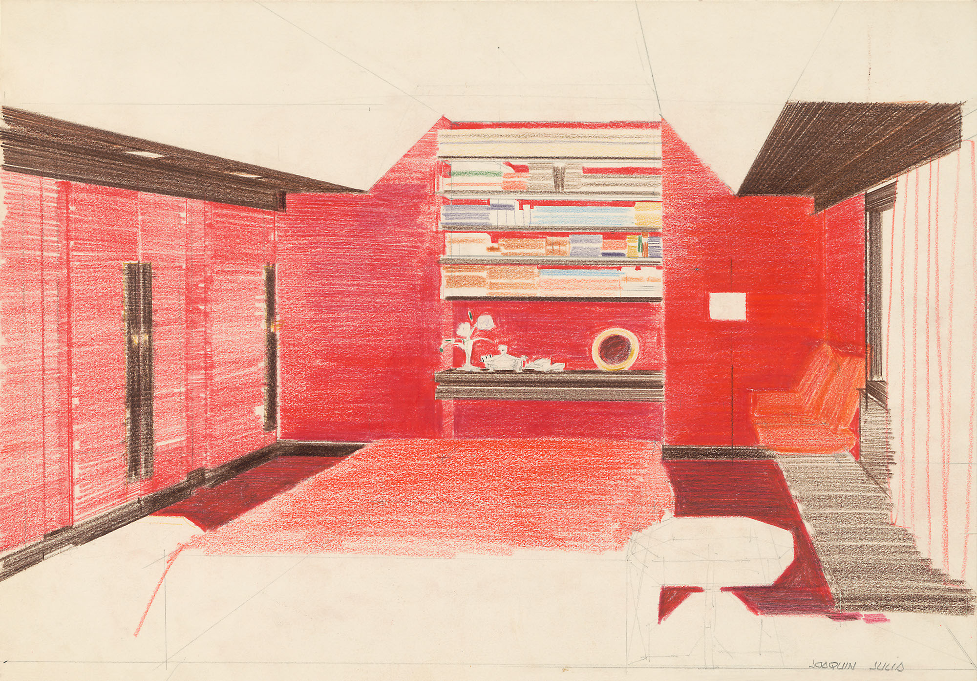 Federico Correa was a key architect in the aesthetic transformation of mid-20th-century bourgeois Barcelona. Known for his formal elegance and masterful use of color, he stood out for his skill in drawing conical perspectives with colored pencils. Together with Alfonso Milá, he designed iconic interiors that are now part of the modern visual identity of Barcelona and Cadaqués.