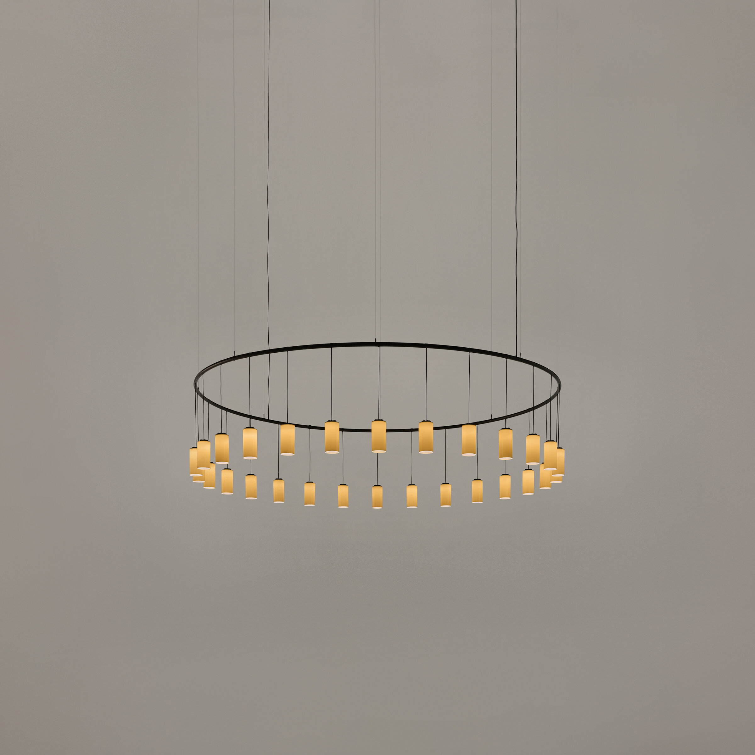 Since ancient times, mosques have used large chandeliers suspended in concentric rings as symbols of unity and transcendence. These floating structures create a sense of weightlessness and harmony within the space. With its enveloping and solemn effect, Cirio offers a reinterpretation of that tradition, aiming to elevate the spirit.
