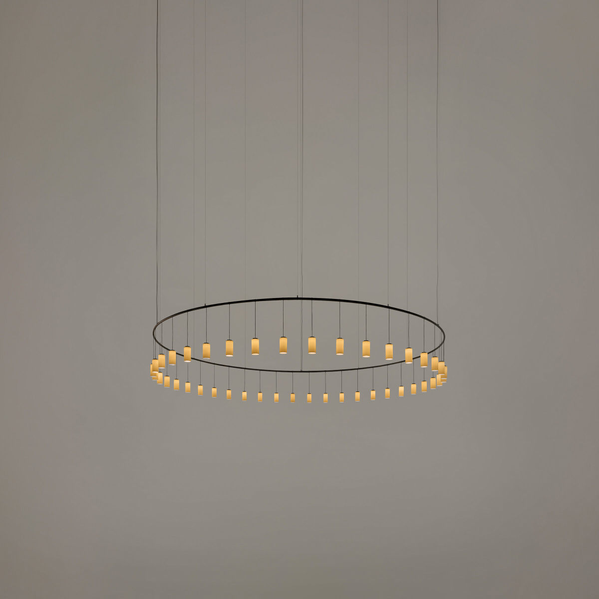 Since ancient times, mosques have used large chandeliers suspended in concentric rings as symbols of unity and transcendence. These floating structures create a sense of weightlessness and harmony within the space. With its enveloping and solemn effect, Cirio offers a reinterpretation of that tradition, aiming to elevate the spirit.