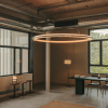 The first lamp designed by Antoni Arola, Nimba is a luminous ring that appears to be floating in the air. Its name comes from being “like the nimbus or halo of holy images—something that is seen but is not there.” Through its compositional geometry, it casts light toward the empty center to radiate outward in all directions.