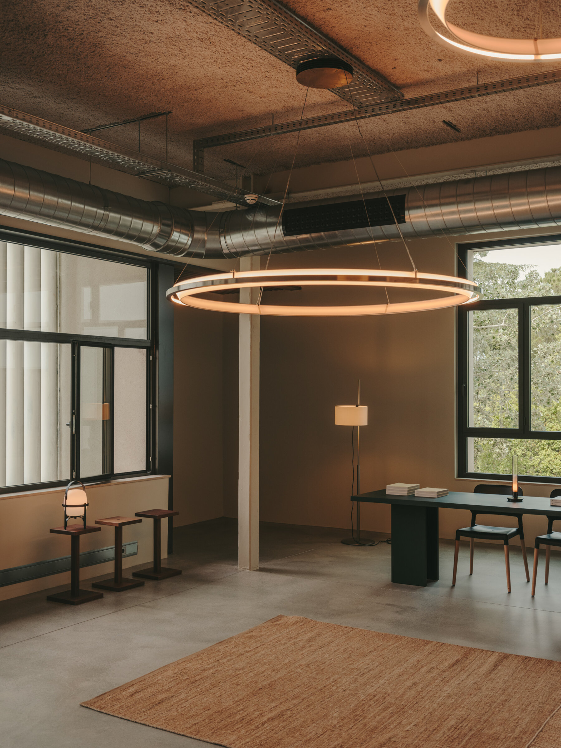 The first lamp designed by Antoni Arola, Nimba is a luminous ring that appears to be floating in the air. Its name comes from being “like the nimbus or halo of holy images—something that is seen but is not there.” Through its compositional geometry, it casts light toward the empty center to radiate outward in all directions.