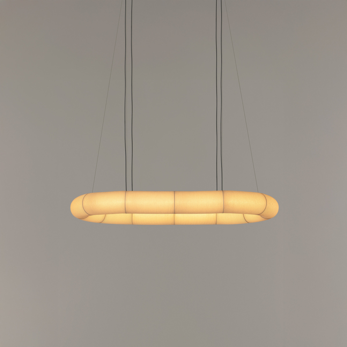 Tekiò—meaning “adaptation” in Japanese—fuses ancient artisanal techniques with Warm to Dim LED technology, allowing for adjustable intensity and color temperature in tandem. Its highly technical structures are wrapped in handcrafted paper made by Japanese artisans. Whether alone or combined, its serene luminous power can shift from a whisper to an exclamation.