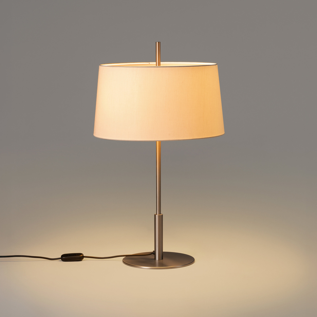 Black linen lampshade. Stone parchment upper diffuser.