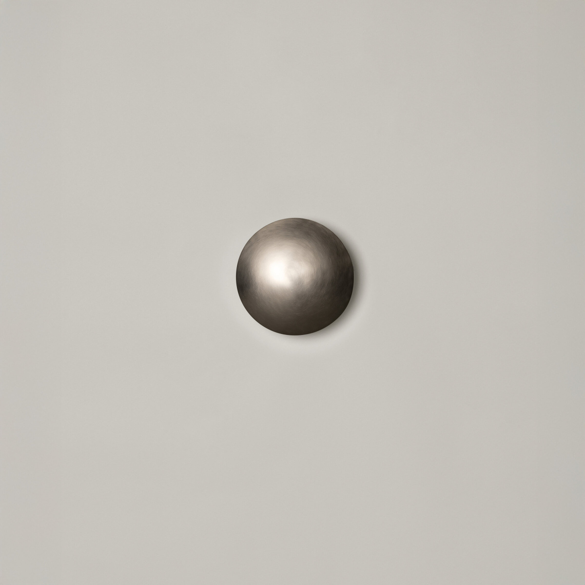 This metal disc, available in two sizes—Disco M and Disco L—reflects its light onto the wall, creating a halo around its opaque circle finished in satin nickel. Buttons of light in space.