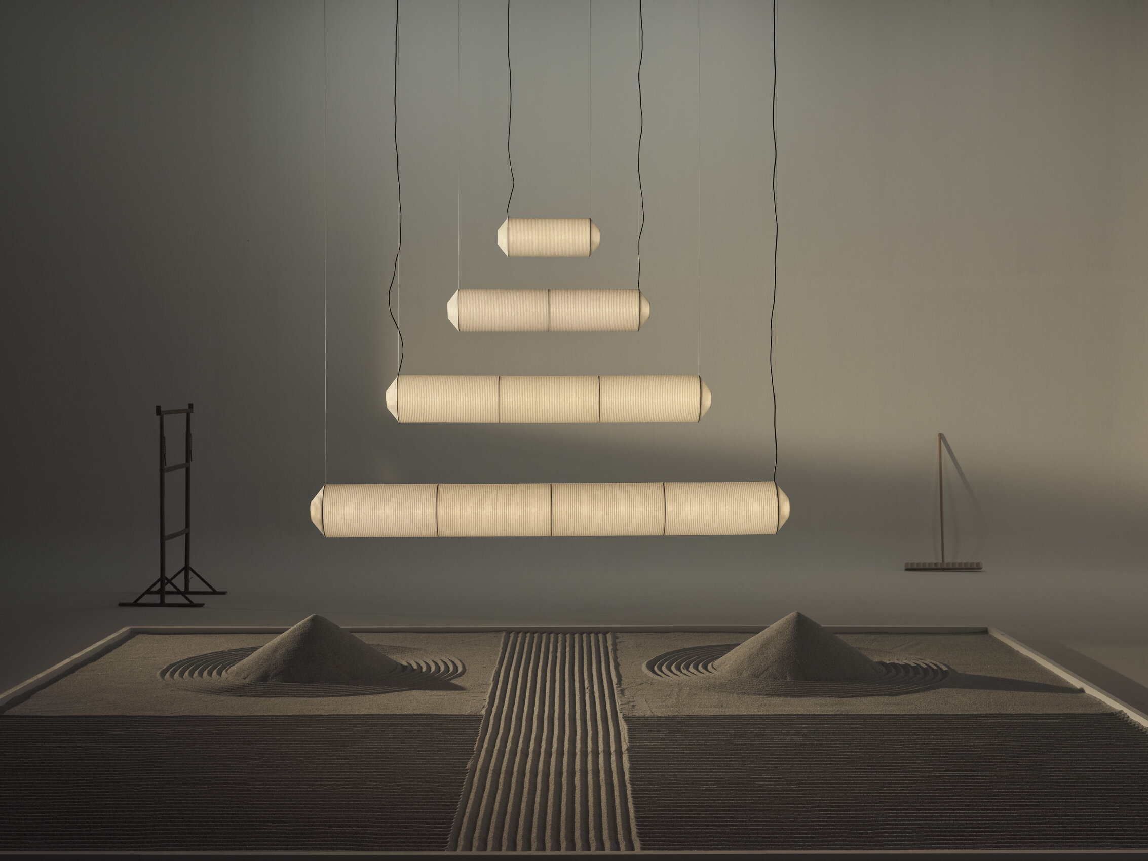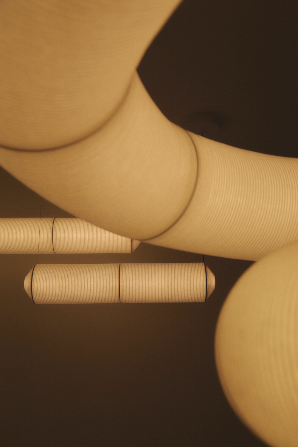 Tekiò—meaning “adaptation” in Japanese—fuses ancient artisanal techniques with Warm to Dim LED technology, allowing for adjustable intensity and color temperature in tandem. Its highly technical structures are wrapped in handcrafted paper made by Japanese artisans. Whether alone or combined, its serene luminous power can shift from a whisper to an exclamation.