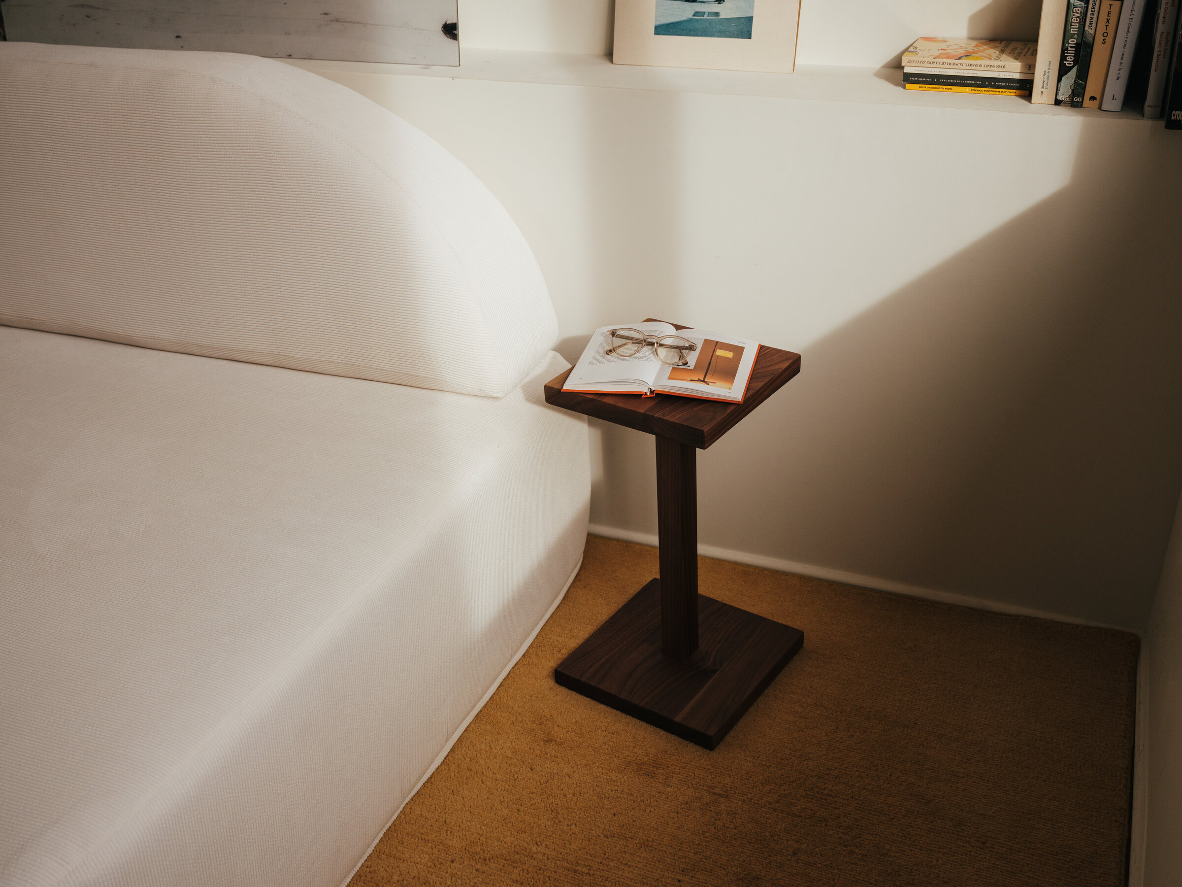 La Peana Molina es pura madera maciza de nogal y una pieza siempre a mano que sirve para todo. Sobria, dura, eficiente, amable. Una Peana Molina en casa es una solución pequeña y noble, siempre a mano para los mejores servicios.
