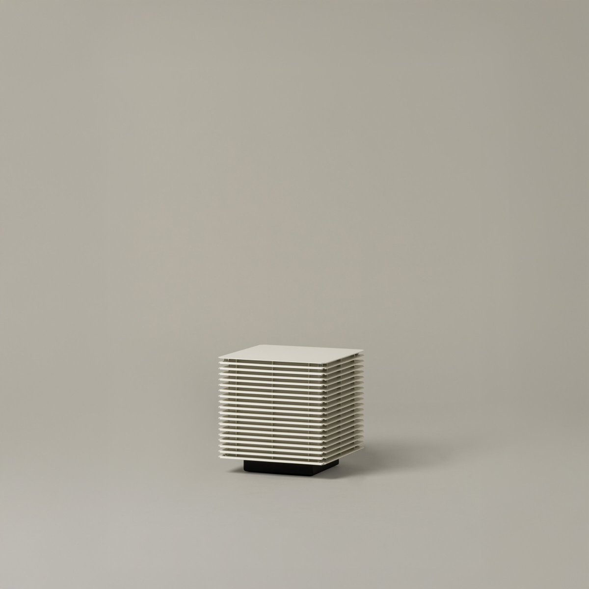 Esta lámpara de exterior establece un diálogo entre arquitectura y jardín, integrándose con fluidez en su circunstancia. Es un objeto racional y pulcro, donde la estructura no encierra, sino que filtra el flujo luminoso a través de unas lamas dispuestas en forma de cubo. El resultado es una iluminación suave y rasante, que genera una atmósfera de calma y equilibrio entre el espacio exterior habitado y la naturaleza abierta.