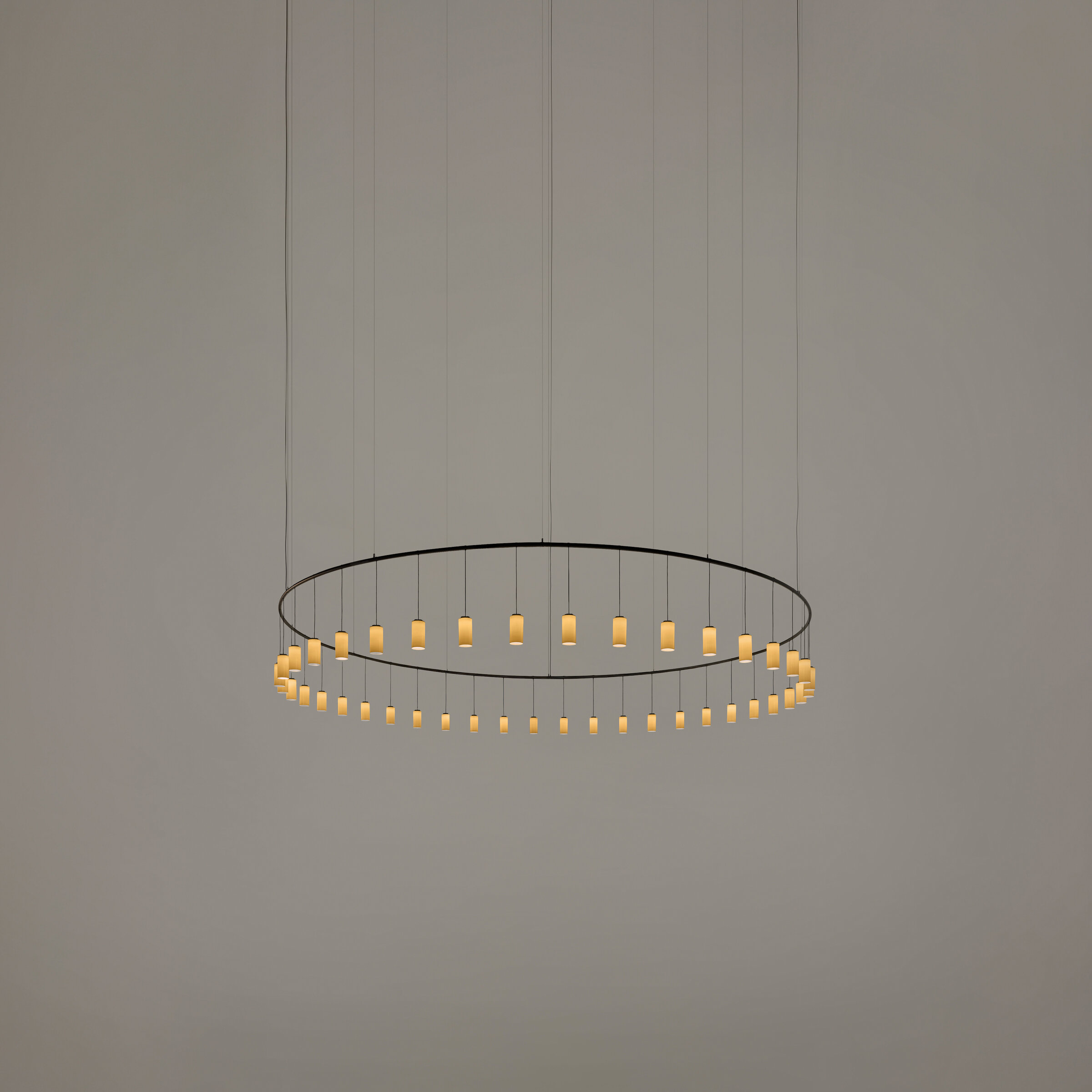 Desde un único punto de luz hasta grandes composiciones flotantes, Cirio es un sistema vivo que se adapta a los espacios ofreciendo una amplísima gama de juegos compositivos.