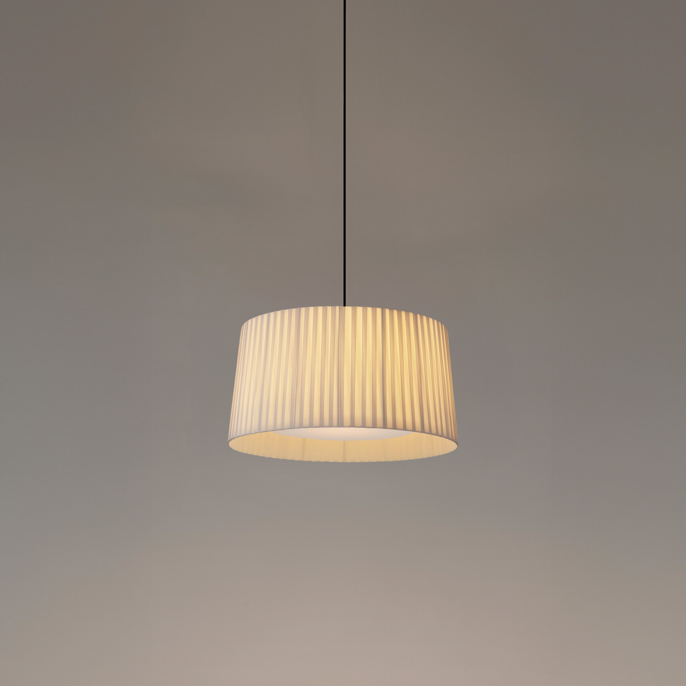 Desde enormes lámparas colgantes para vestir los espacios más exigentes hasta pequeñas lámparas de sobremesa. Esta es una colorista familia de tambores encintados que sabe cambiar de escala sin perder su esencia.