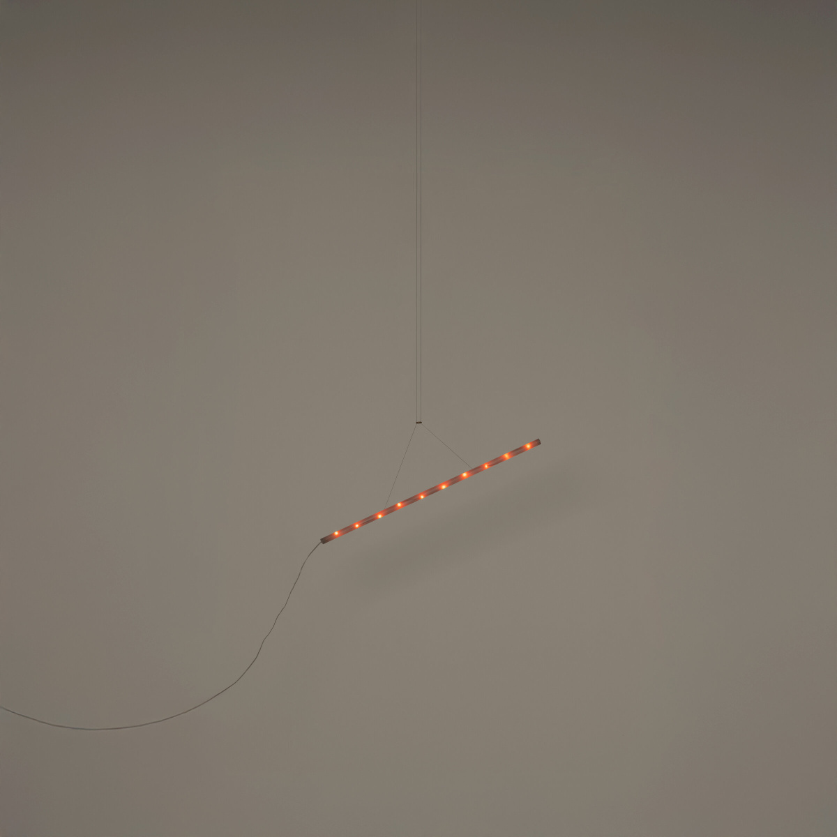 Un tubo translúcido protege una serie de bombillitas de neón en su interior. Su longevidad y su bajísimo consumo eléctrico, estimulan a dejarla encendida todo el día, al punto que se entrega sin interruptor. Con opción de suspenderla por un hilo fino y resistente, produce la ilusión de estar flotando en el espacio. Y múltiples son sus usos en dormitorios o salones, como piloto permanente en pasillos, escaleras o porches, e incluso en grandes instalaciones.