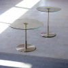 Las mesas Diana destacan por su equilibrio sereno y su elegancia sencilla. Su estructura metálica rematada por un sobre de cristal compone una silueta fresca aunque firme, disponible en varios tamaños para adaptarse a distintos espacios. Una pieza auxiliar versátil que combina clasicismo y modernidad.