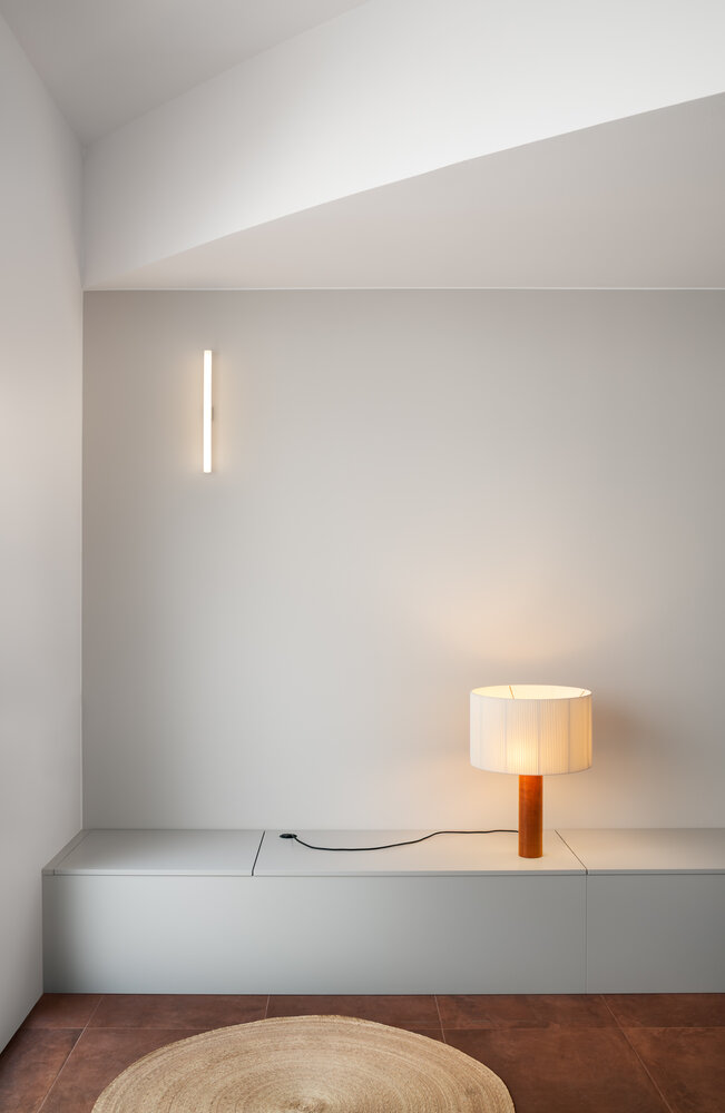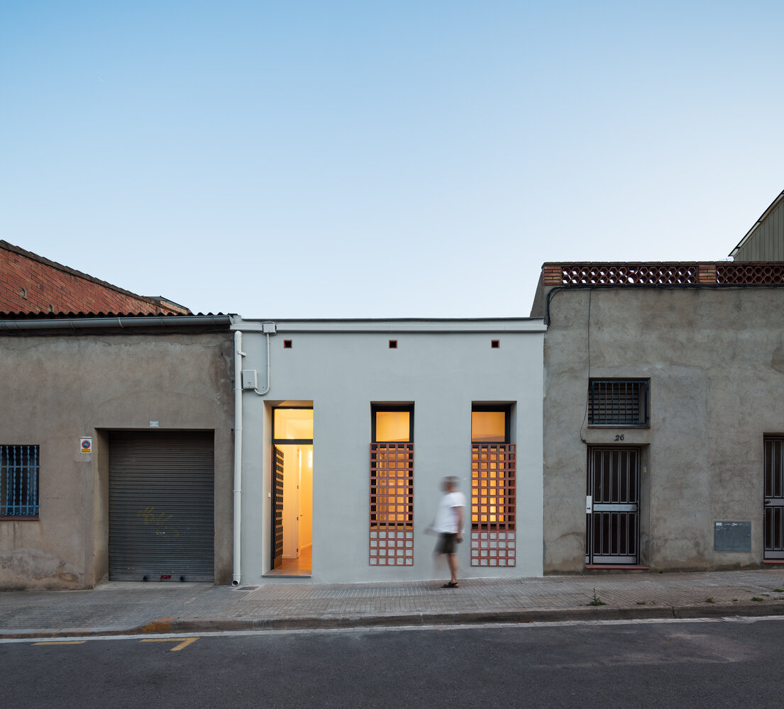 Hiha Studio ha reformado la vivienda buscando una mejor orientación solar y el máximo aprovechamiento de la superficie. Como carta de presentación, una fachada simétrica, donde las celosías cerámicas resguardan la privacidad del interior. Con discreción, el frontal se alinea con los materiales del proyecto, la cerámica, presente en los suelos o la madera lacada de la carpintería.