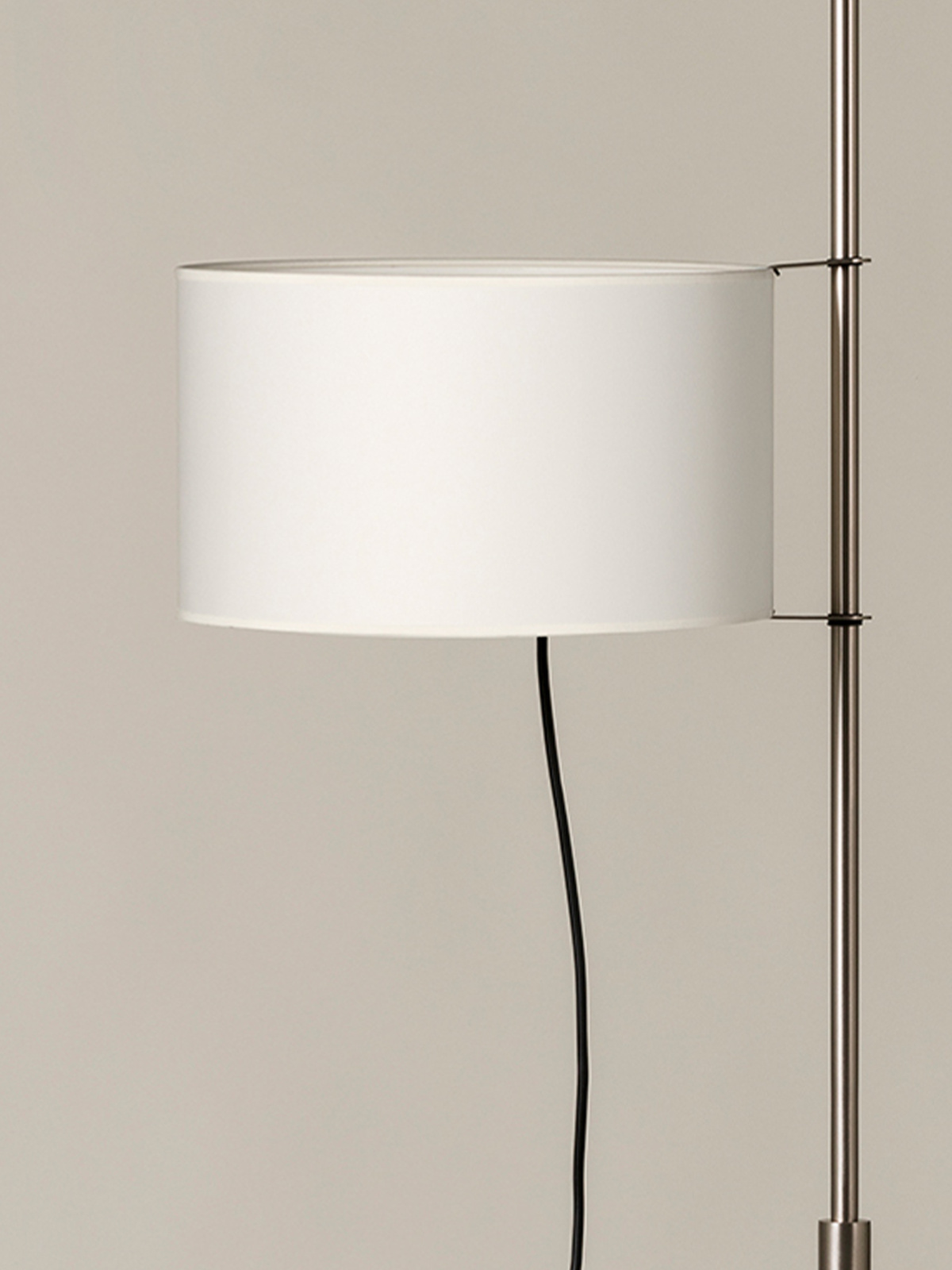 Pantalla de cartulina blanca rotatoria y regulable en altura para estructura de níquel.